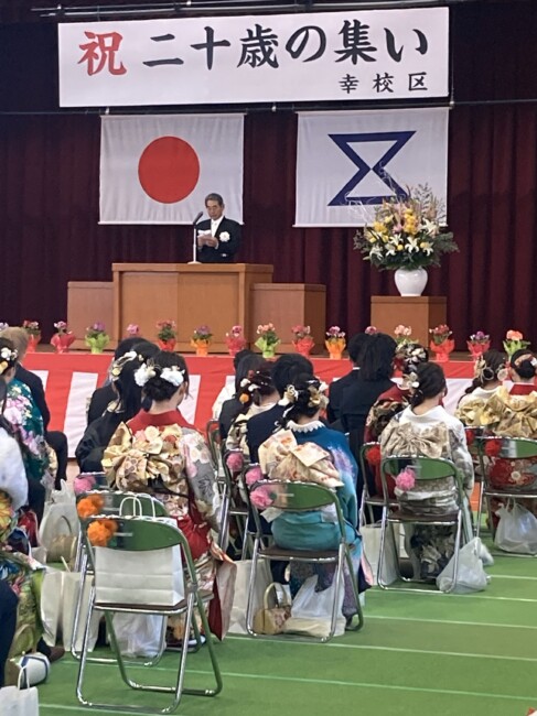 二十歳を迎えた皆さんの代表者から大人としての自覚を持ち責任ある社会人として歩んでいくとの決意とお礼の言葉がありました。校区の新たな担い手となるみなさんのさらなる飛躍を心から願う式典となりました。