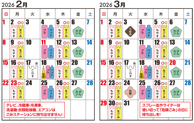 クリーンカレンダーは町自治会、市役所、窓口センターなどで配布しています。